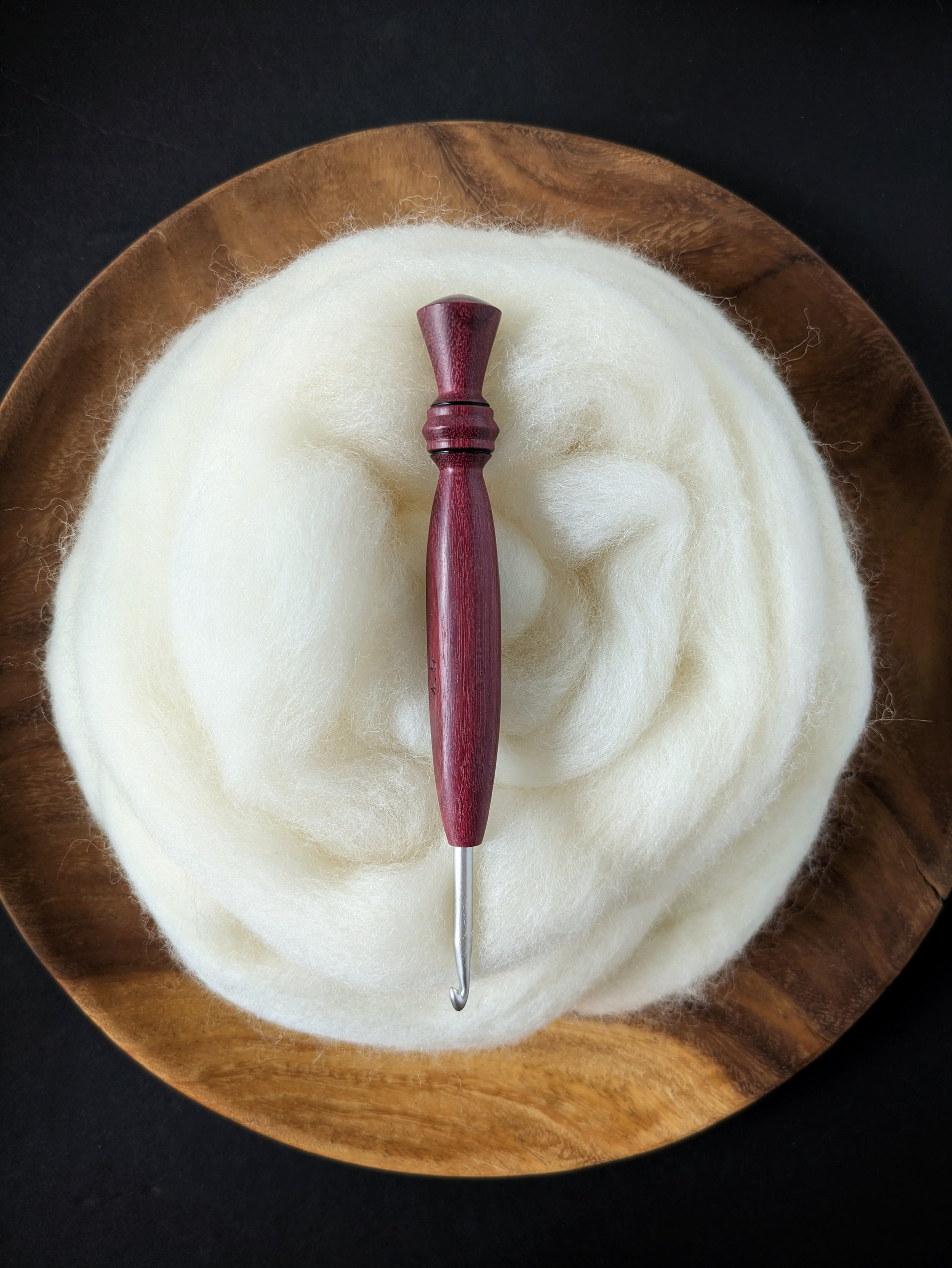 Care Instructions: Avoid leaving hooks in direct sunlight for extended periods of time as this may alter the natural wood color. Use a soft cloth to clean if needed - no need to condition or oil your BQueen hook.