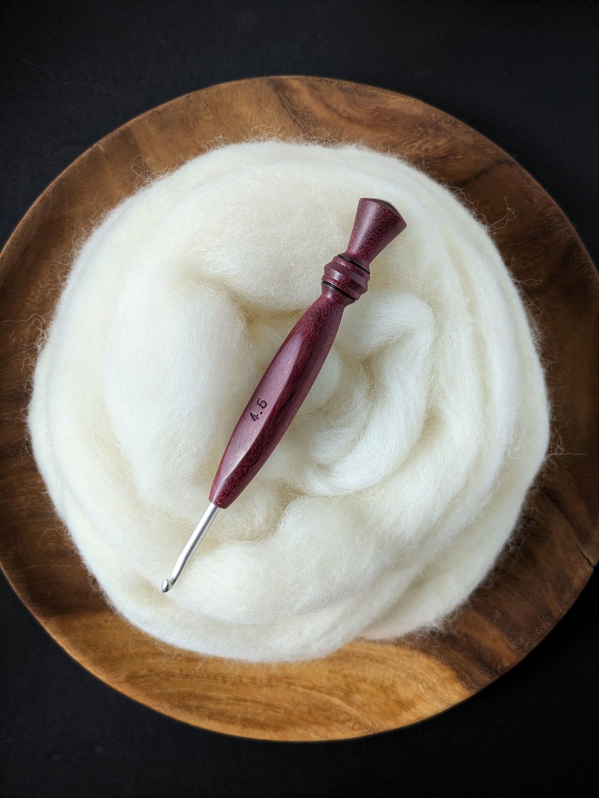 7 4.5mm Purpleheart Ergonomic Wood Crochet Hook